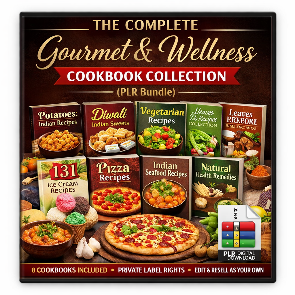 The Complete Gourmet & Wellness Cookbook Collection is a powerful 8-book Private Label Rights (PLR) digital bundle designed for food lovers, home cooks, marketers, and entrepreneurs who want high-quality recipe content ready to use or resell.
